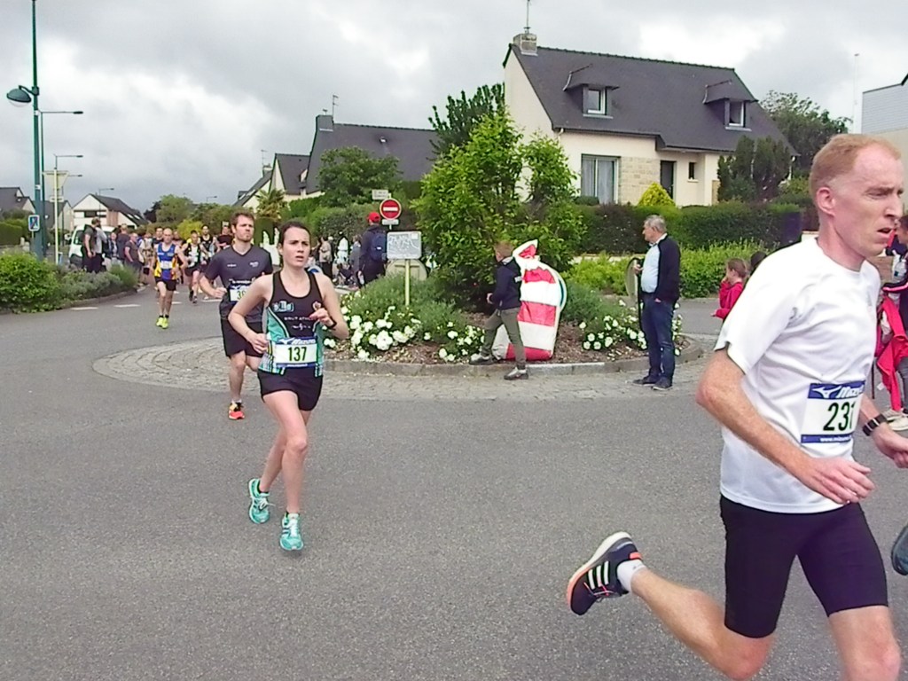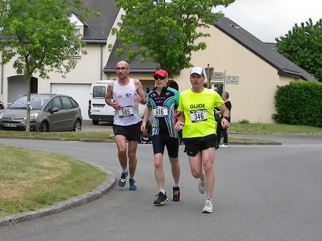 Chez les hommes, Damien Tessier toujours aux avants postes avec un podium chez les V1, 3ème en 34’52 ». Anthony Senel, après son expérience du steeple aux interclubs, se classe 15ème sur cette épreuve en 38’48 ». Podium également pour Julien William chez les espoirs avec une belle 2ème place en 39’02 ». Victoire chez les cadets pour Jules Pasco toujours en pleine progression sous les conseils de Benny. Il réalise une belle performance en bouclant la distance en 41’45 ». A noter aussi, la présence de Jean Marc Trolet, athlète mal-voyant du club accompagné de son guide. Jean- Marc s’était fixé comme objectif un temps inférieur à 53′, contrat rempli, jean Marc boucle la distance en 52’58 », chapeau !!