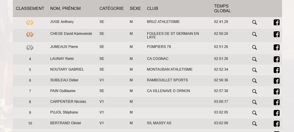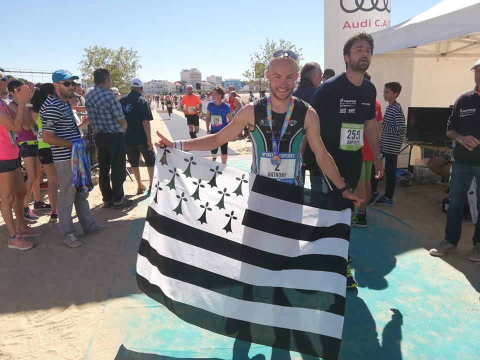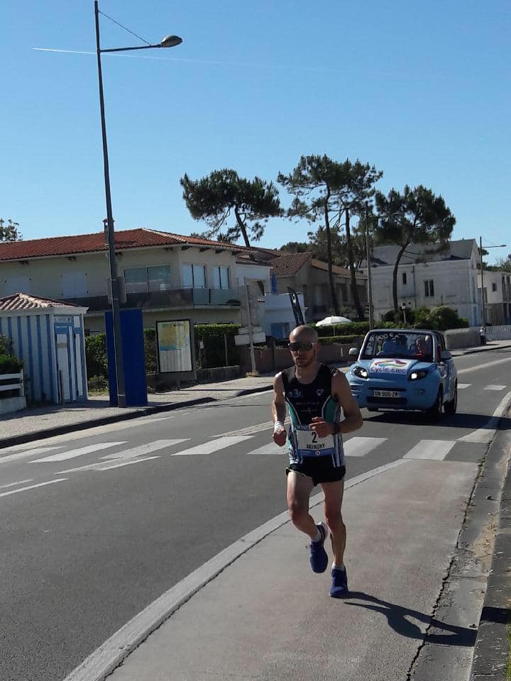 Il n’y a pas que l’épreuve qui portait le mot beauté mais aussi la victoire de notre bel athlète Anthony Jugé. Après sa belle performance sur le marathon de Paris (2h27″), Anthony vient de réalisé un nouvel exploit avec cette victoire sur ce marathon de Royan-côte de beauté en 2h41’29 ». Sous une chaleur accablante, notre Bruzois avait décidé d’aller au combat sur ces 42,195km. En effet, pendant toute la durée de l’épreuve, la peur de laisser filer le favori était présente. Ainsi Anthony avait décidé de maintenir une allure légèrement supérieur à son principal adversaire pour le tester. La durée de l’épreuve et les kilomètres cumulés ont donné raison à Anthony. Il passe la ligne d’arrivée en vainqueur avec près de 9 minutes d’avance sur son principal adversaire. Un victoire en beauté.