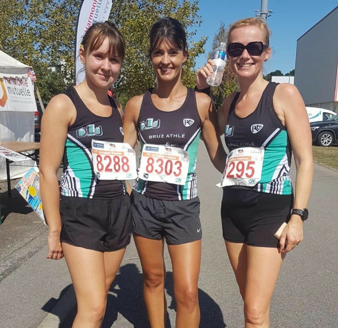Chez les femmes (en tête du classement provisoire du challenge), joli tir groupé avec Manon Creff 7ème en 41’58 », Sabrina Léon-Hugues 9eme en 43’30 », Delphine Boyer-Heulot 4ème (VF1) en 44’06 », Sylvaine Bosher 7ème (VF1) en 49’12 », Charlene Vignon 24ème en 50’46 » et Romane Vallée qui occupe une belle 4ème chez les juniors en 51’58 ». 🥉 💪🥉🖤💚#Bruzathlé