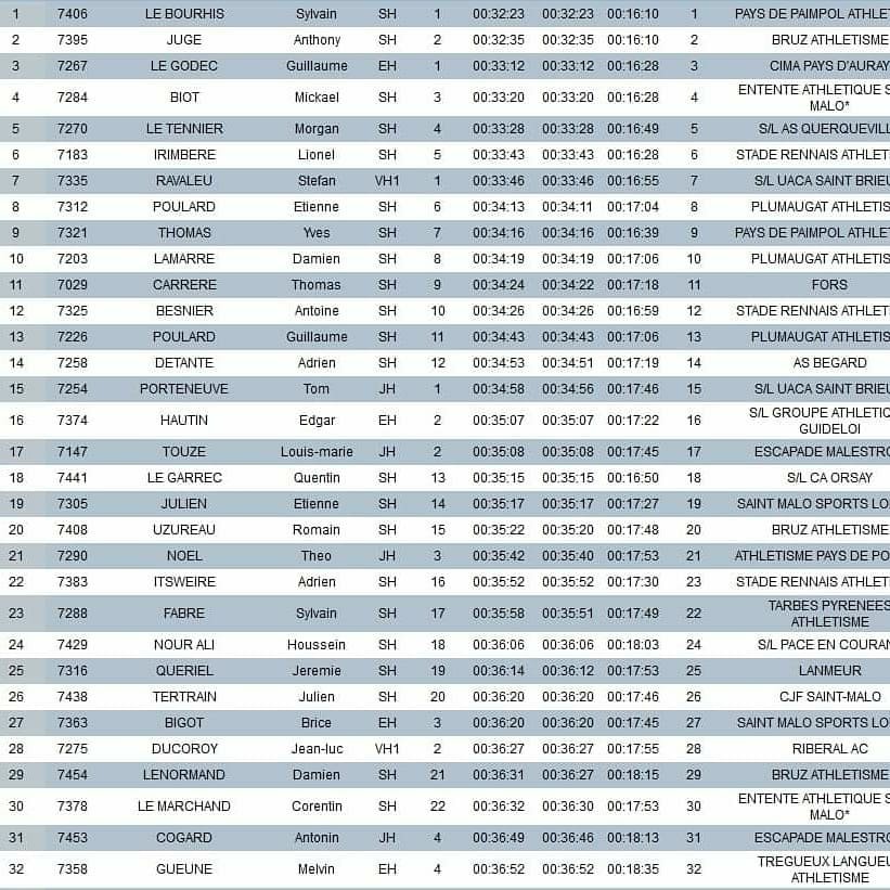 Chez les hommes, belle 2 ème place d’Anthony Jugé en 32’35 », Romain Uzureau 20ème en 35’22 », Damien Lenormand 29ème en 36’31″et Pascal Boyer 16ème (VH1) en 43’58 ».