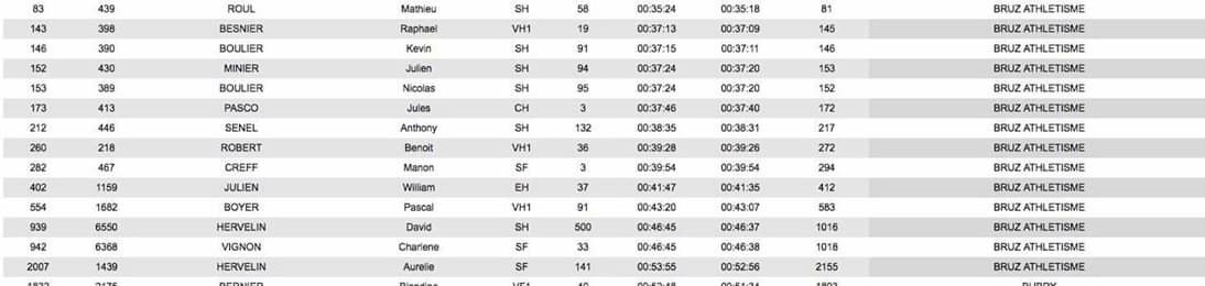 Sur l’épreuve du 5km, nous avions Aurélien Lelandais qui se classe 38eme avec un chrono de 16’58 ». Seul athlète de Bruz sur cette distance. Bravo, grâce à Aurélien le club etait présent sur toutes les distances proposées sur cette épreuve.