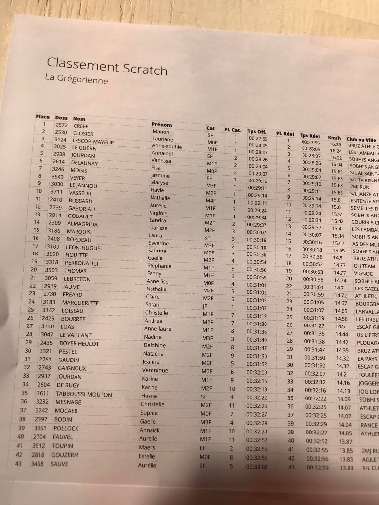 Énorme victoire de Manon Creff à la Gregorienne 🏆🥇bravo à Sabrina,Delphine et Catherine pour leurs beaux temps et belles places 💚🖤