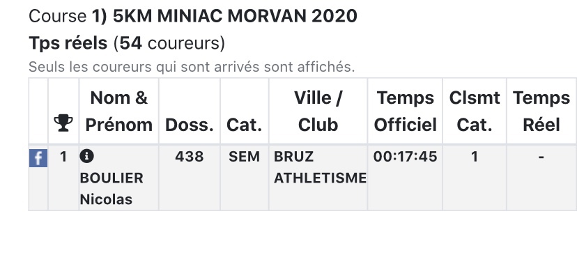 - Victoire de Nicolas Boulier au 5km de Miniac Morvan en 17’45!