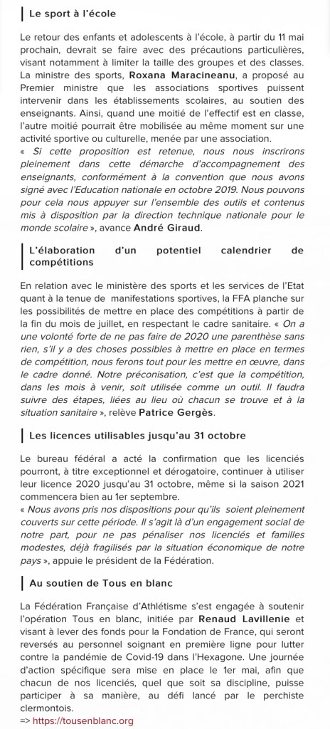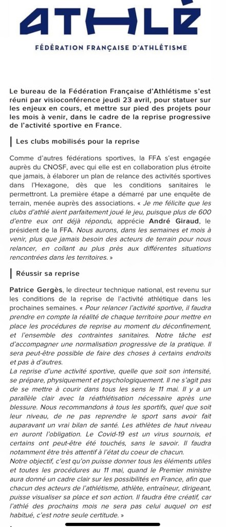 Lettre de la fédération à l’approche de la sortie du confinement//04 mai 2020 Publié le 4 Mai 20204 Mai 2020 par fredlancien Prenez soin de vous. Partager : Partager sur X(ouvre dans une nouvelle fenêtre) X Partager sur Facebook(ouvre dans une nouvelle fenêtre) Facebook J’aime chargement…