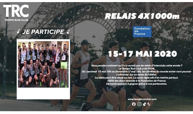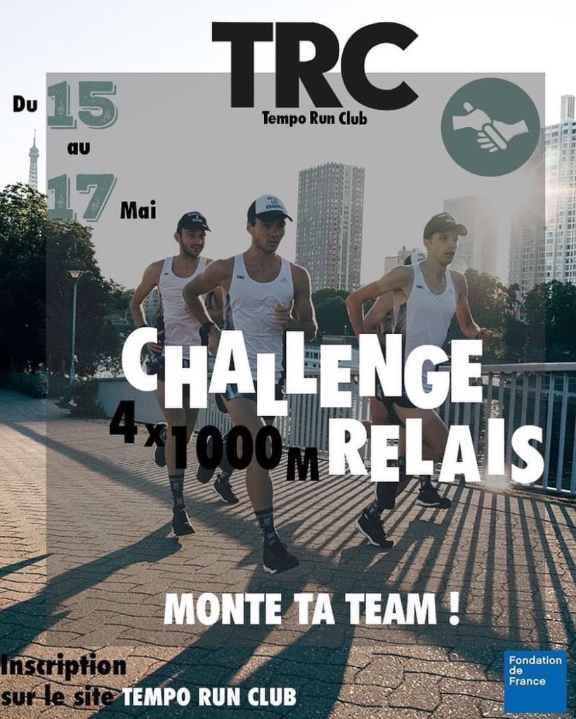 Course relais organisée par le TRC. Composez votre équipe. 100% des dons seront reversés à la fondation de France. Pour cette belle initiative, lâchez vous…👍🚀