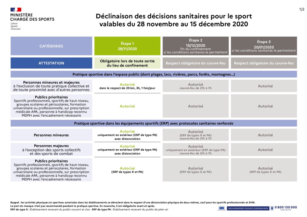 A partir du 15 décembre, l’accès au stade sera autorisé à tous les athlètes. Donc pour la totalité des athlètes accès au stade dès le mercredi 16 décembre 2020.