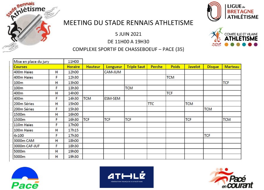 Pour votre meeting de samedi, je vous informe que les horaires ont été modifiés. Je vous invite à vérifier votre horaire de départ ou de passage sur le tableau ci dessous.