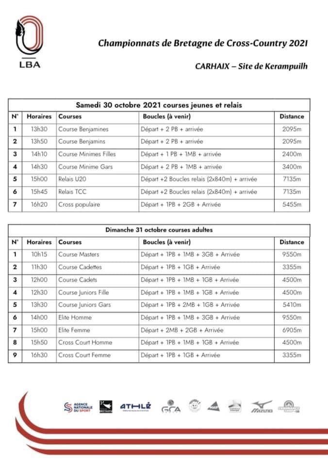 Quelques infos sur les championnats de Bretagne de Cross du 31 octobre de Carhaix.