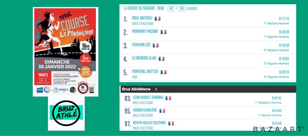 Victoire pour Mathieu Roul sur le 5km. 2ème place pour Sabrina Leon-huguet , 4ème Delphine Boyer Heulot et 5ème place pour Charlène Vignon.