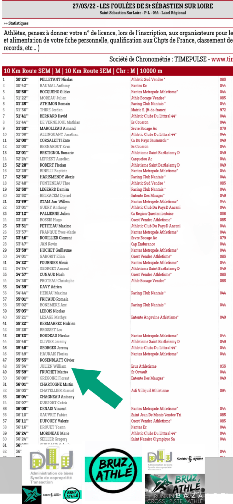 Les Foulées de St Sébastien sur Loire. Publié le 28 mars 2022 par basiteweb Les foulées de St Sébastien sur Loire (10km).William Julien 48 ème en 35’54”. 💚🖤👏👏👏👏 Partager : Partager sur X(ouvre dans une nouvelle fenêtre) X Partager sur Facebook(ouvre dans une nouvelle fenêtre) Facebook J’aime chargement…