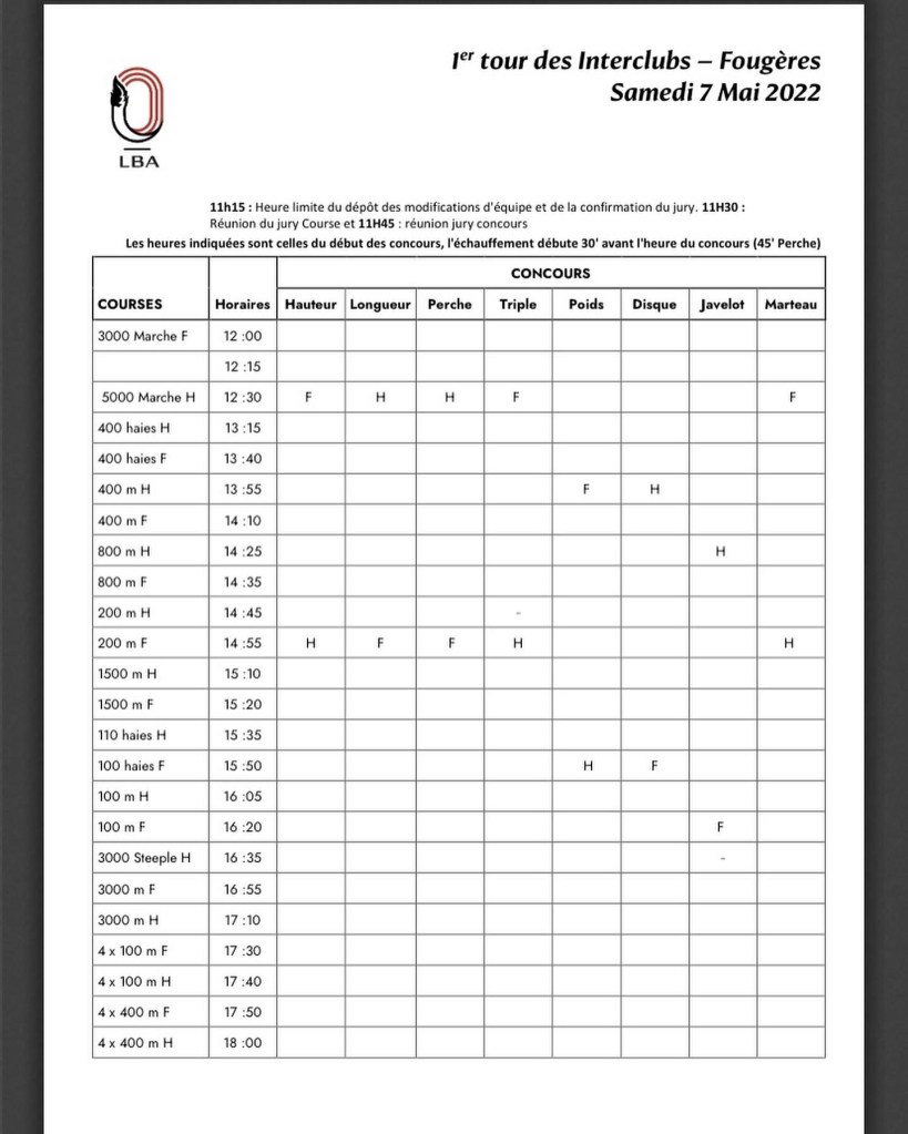Covoiturage pour le déplacement du 1er tour des Interclubs à Fougères le samedi 7 mai 2022.