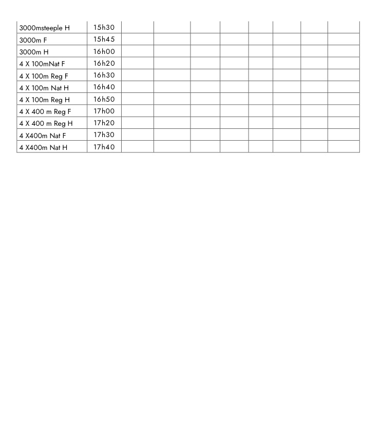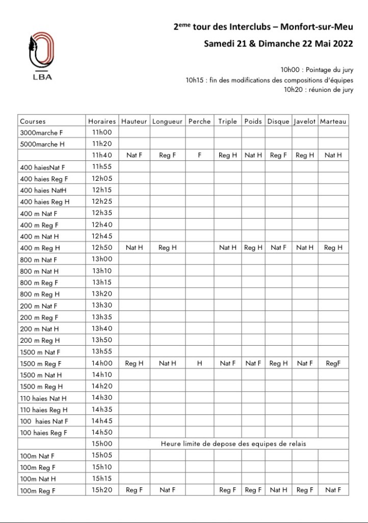 Modification du programme, vous pouvez consulter les horaires dans le document suivant ou consulter directement les informations sur le site de la ligue via le lien suivant : https://nextcloud.bretagneathletisme.com/nextcloud/index.php/s/FcsF2FatFgE6nxx