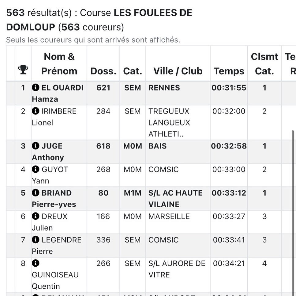 - Anthony Jugé 3ème au scratch et 1er M0M en 32’58”