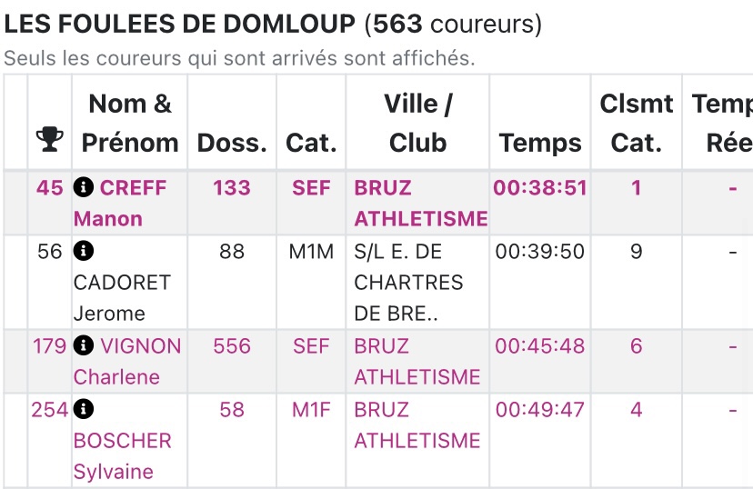 - Manon Creff 1ère SEF en 38’51”