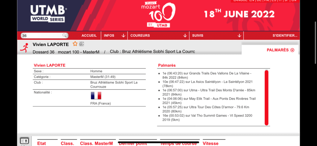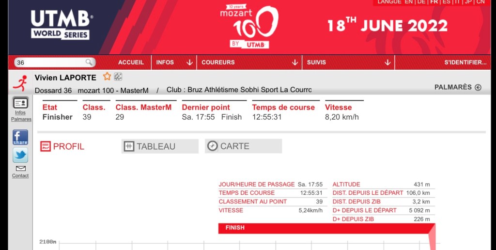 Bravo Vivien pour cette performance, retrouvez toutes les infos sur la course de Vivien. https://mozart100.livetrail.run/