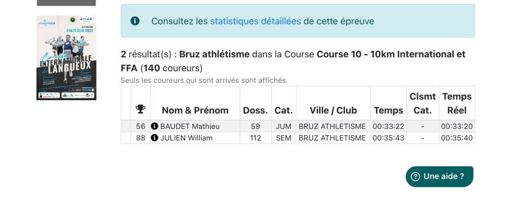 Corrida internationale de Langueux, 24/25 juin 2022. Les résultats… Publié le 27 juin 2022 par basiteweb Partager : Partager sur X(ouvre dans une nouvelle fenêtre) X Partager sur Facebook(ouvre dans une nouvelle fenêtre) Facebook J’aime chargement…